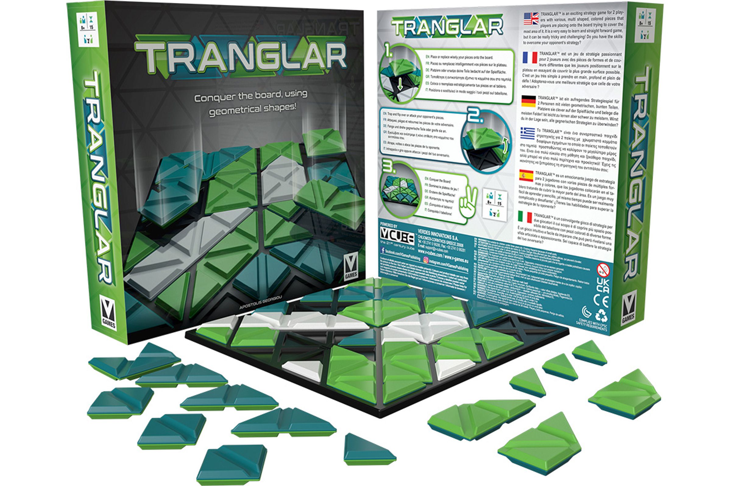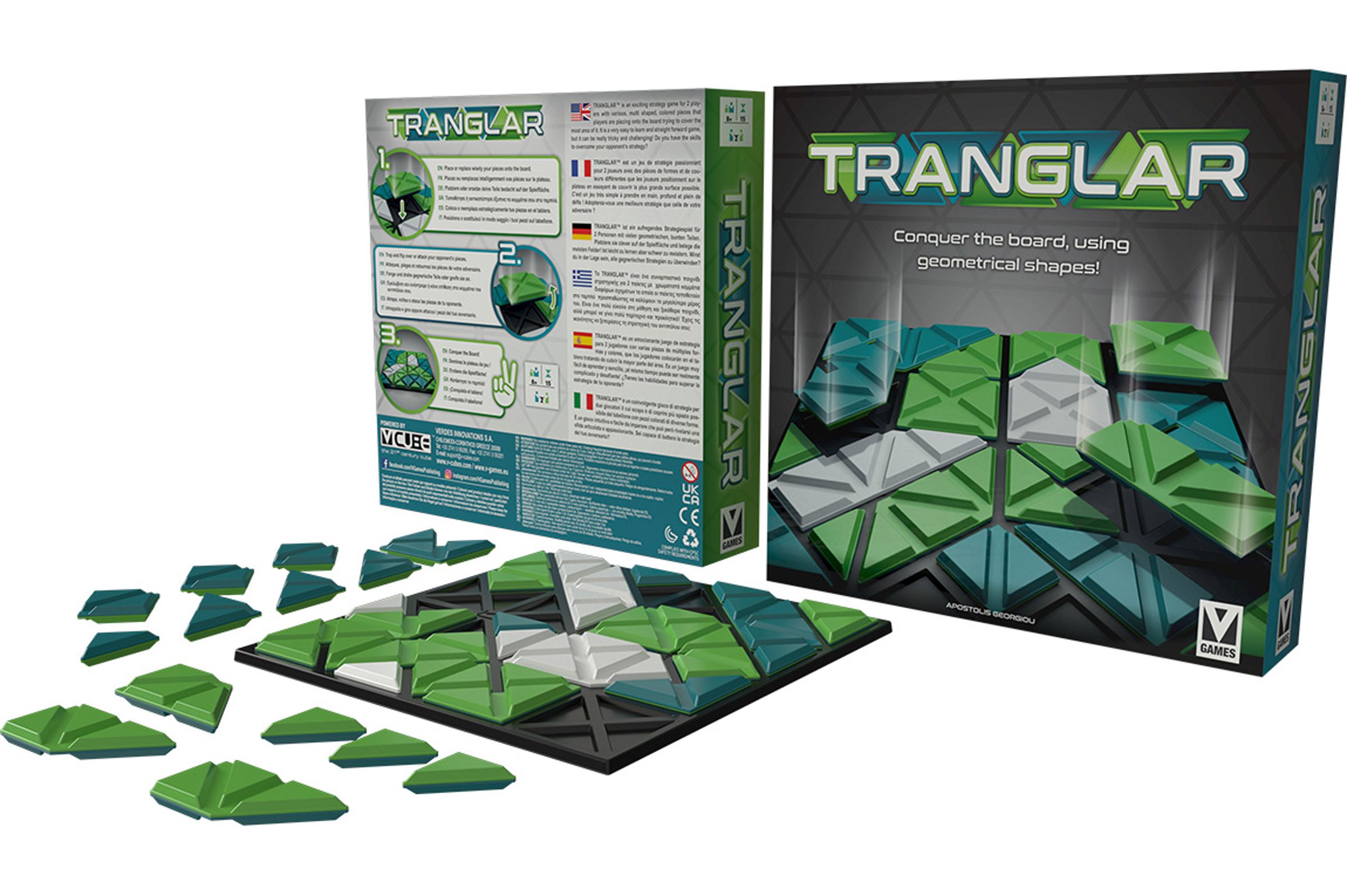 Tranglar™ is an abstract strategy game for 2 players with various, multi-shaped, colored pieces that players are placing onto the board.